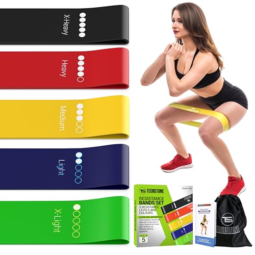 TechStone Motståndsband, set för män och kvinnor, paket med 5 olika motståndsnivåer, elastiskt band för hemmagym, lång träning, bra fitnessutrustning för träning, yoga, gratis bärväska