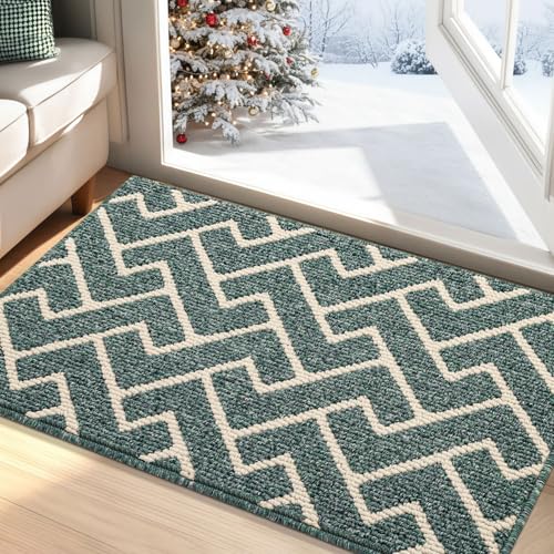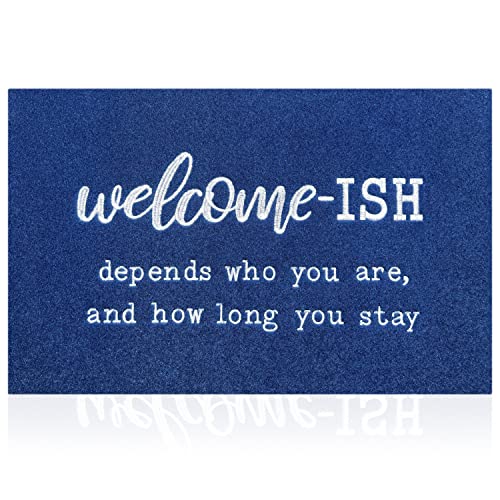 JJUUYOU Välkomstmatta låg profil golvmatta ytterdörrmatta, blå välkommen-ish inomhus utomhusdörrmatta halkfri absorberande motstår smuts entrématta för entré, uteplats