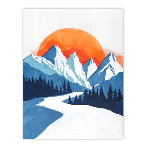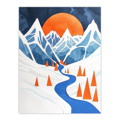 Artery8 Abstract River Mountain Winter Snow Landscape Living Room Large Wall Art Poster Print Thick Paper 18X24 Inch