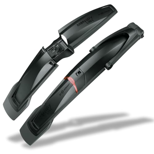 MonkeyLink MonkeyFender set MTB Recharge 26 tum – 29 tum mountainbike stänkset inkl. bakljus, cykeltillbehör (avtagbart batteri, StVZO-godkännande, inkl. monteringsmaterial och MonkeyChuck), svart