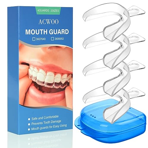 ACWOO munskydd för att slipa tänder och knyta ihop, 4-pack Sleep Mouth Guard Dental Night Guards, Återanvändbara munskydd som slipar tänder för att förhindra bruxism (A)