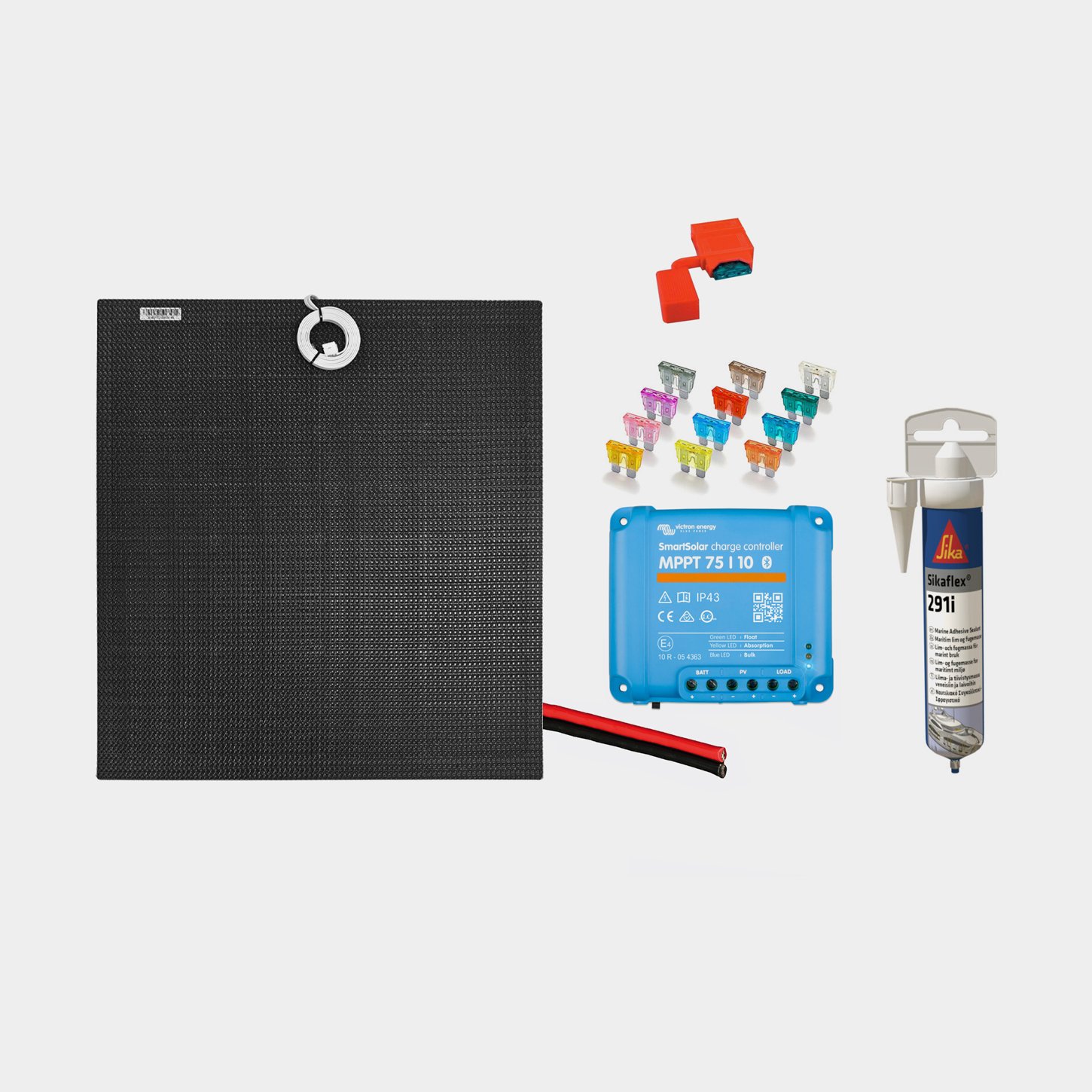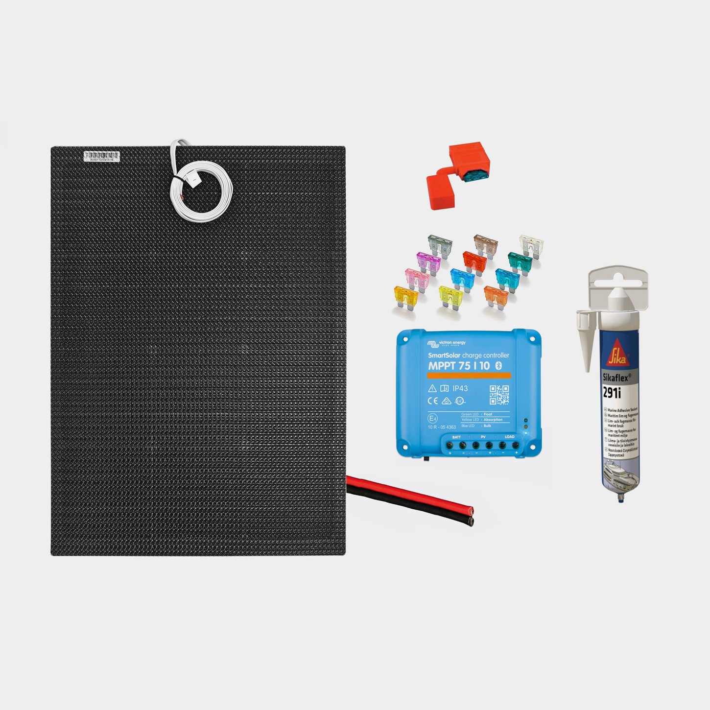 Juni Solar Solcellspaket för fast installation Flush Mounted Cable, 100 W, monokristallin, flexibel, 12 V, 1040 x 520 3 mm, med MPPT-regulator (10 amp) + kablar säkringshållare & säkring lim