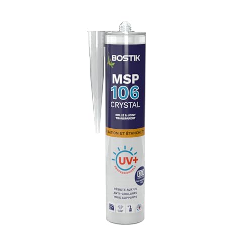 Bostik Transparent lim MSP 106 osynlig - för limning och tätningar - flera material - inomhus - MS Polymer formula - utan lösningsmedel och isoyanat - patron 290 ml