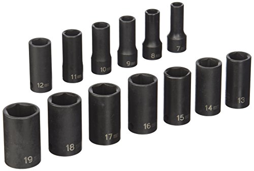 Grå pneumatisk (1213MSD 3/8" enhet 13-delad halvdjup metrisk sockelsats