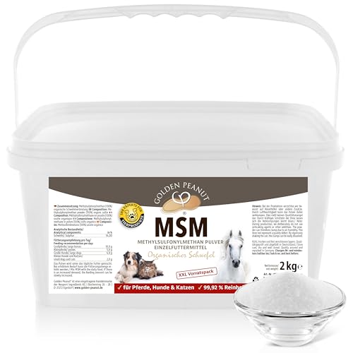 Golden PEANUT MSM metylsulfonylmetan pulver 2 kg för djur, renhetsgrad 99,92 %, organisk svavelförening, utan bulthjälpmedel