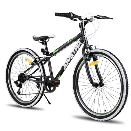 JOYSTAR Lubbock 24 tums barncykel för pojkar och flickor i åldern 9–13 år hardtail mountainbike för barn med 7-växlad svart
