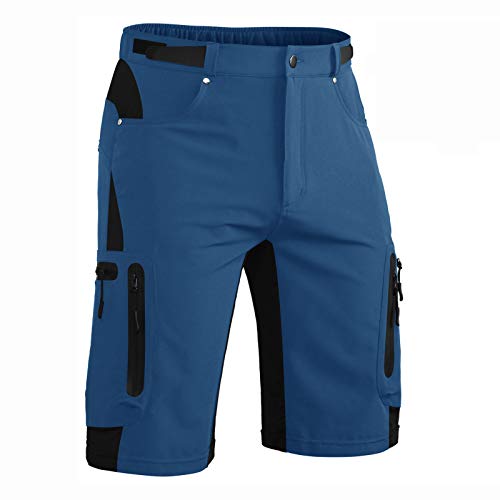 Hiauspor Korta mountainbike-byxor för herr MTB-cykelshorts lätta snabbtorkande cykelshorts med fickor cykelshorts vandring utomhus cykel, Indigo, 5XL