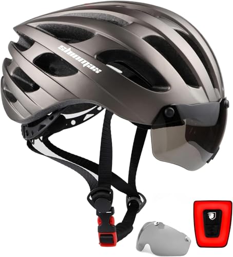 Shinmax Cykelhjälm för herr och dam, cykelhjälm med USB-ljus, uppladdningsbar cykelhjälm med magnetiskt UV-skydd, mountainbike, hjälm, självlysande klistermärke, 57–62 cm (RC-049)