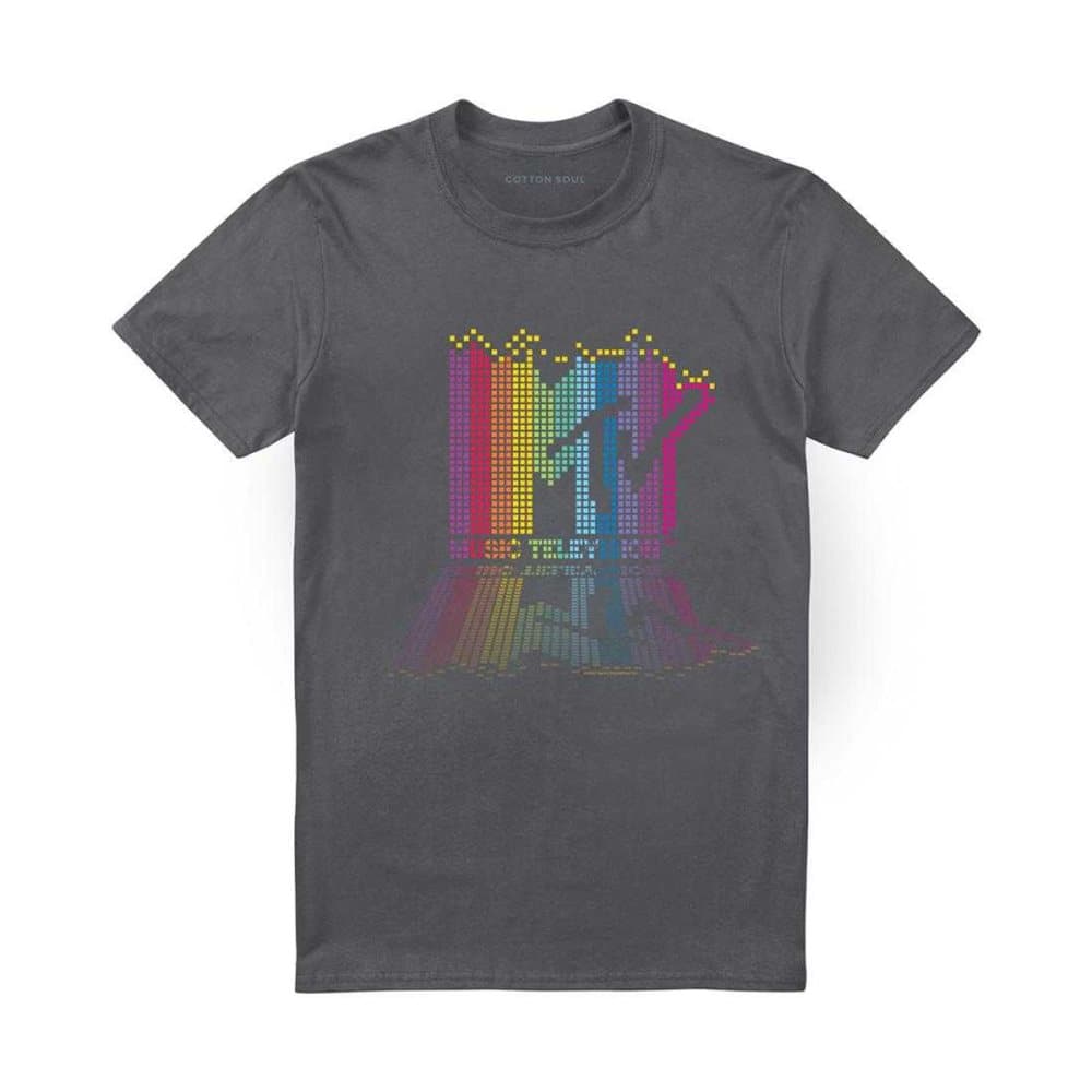 MTV Unisex Adult Rainbow Blocks Logo T-Shirt