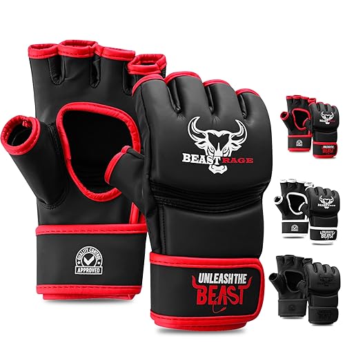 BEASTRAGE MMA-handskar för män och kvinnor, kampsportsmössor Grappling Sparring, ventilerad handflata, VEGAN-läder, Cage Fighting, Muay Thai, Kickboxning, Boxningsväska, Boxning, Kickboxning
