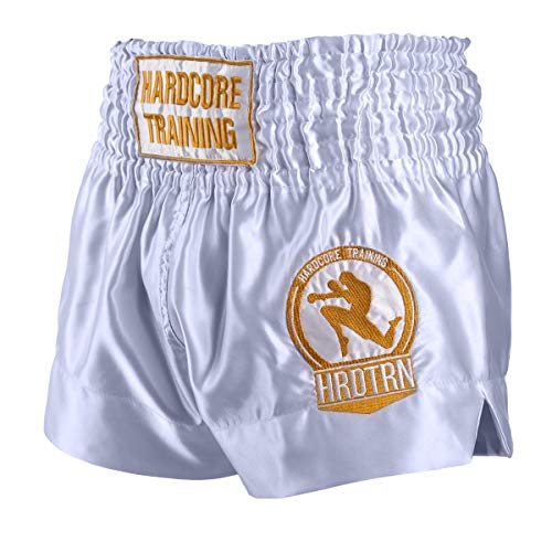 Hardcore Training Classic Muay Thai Shorts Män Thaiboxning Kickboxning Boxning MMA Kamp Sparring (DE/NL/SE/PL, Alfa, 4XL, Regelbunden, Regelbunden, White White)