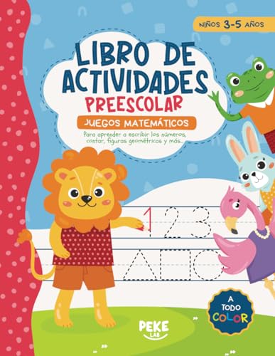 LIBRO DE ACTIVIDADES PREESCOLAR PARA NIÑOS DE 3, 4 Y 5 AÑOS: A todo color, Juegos matemáticos para aprender a escribir los números, contar, figuras geométricas y mucho más
