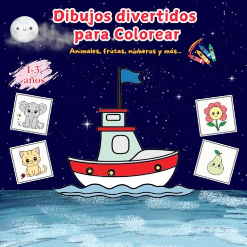 Libro de Dibujos Divertidos para Colorear: 50 Ilustraciones simples y dorables con animales, números, medios de transporte, frutas y mucho más; para ... Ideal para niños curiosos de 1 a 3 años