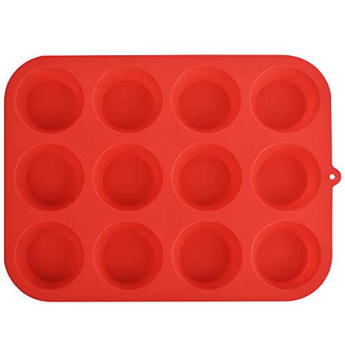 mumbi Muffinsplåt, muffinsform av silikon, cupcake, muffinsform, silikonform för 12 muffins i rött