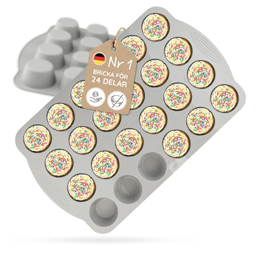 Backefix muffinsplåt i silikon 24 st – muffinsform för små muffins, mini-muffinsform utan pappersformar av platinasilikon, extra väggtjocklek mot utbuktning, formstabil, BPA- & PFAS-fri