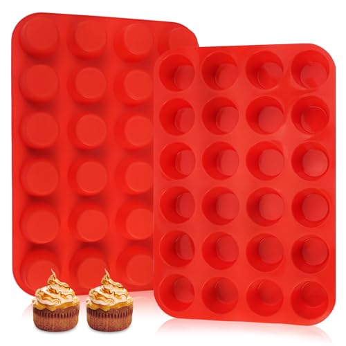 2 stycken minimuffinsformar silikon, 24 koppar muffinsform, muffinsplåt återanvändbar, rund muffinsform, cupcake-formar, BPA-fri, non-stick, diskmaskinssäker, för cupcakes, brownies, kakor