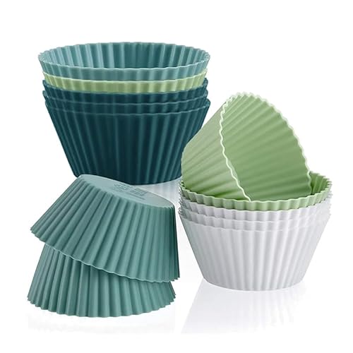 24 stycken muffinsformar i silikon, bakformar, silikon, muffinsform, återanvändbara, non-stick-belagda BPA-fria cupcakeformar för kakor, kräm och pudding