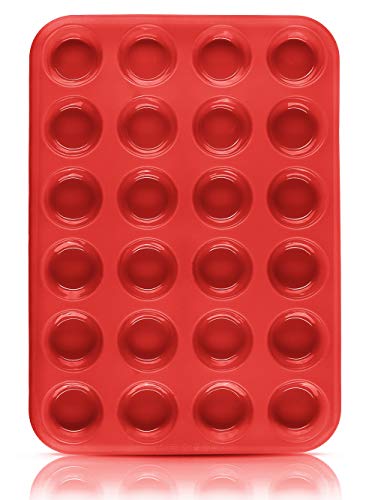 Belmalia Mini Muffinsform i Silikon med 24 Hål | Non-Stick Cupcake Formar för Bakning | Idealisk Present till Bagare | Hemmatlagning Tillbehör | Röd