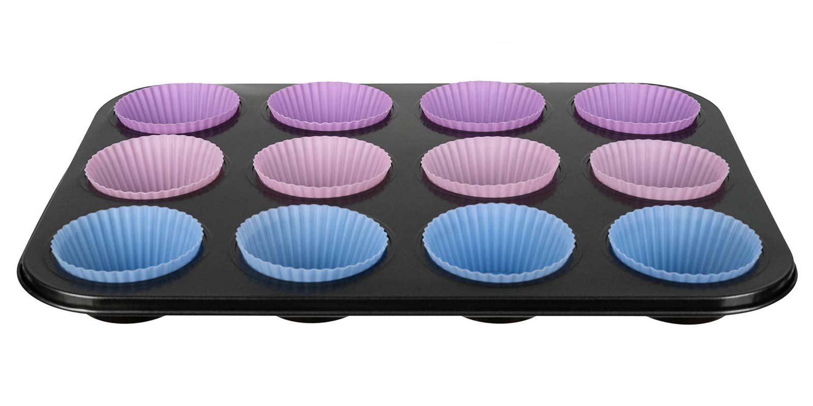 Uppsättning om 12 muffinsformar i silikon, muffinsform 9,2 cm, återanvändbara non-stick silikonbakform, djup muffinsform, silikonformar bakning, perfekt för varmluftsfritös och cupcakes