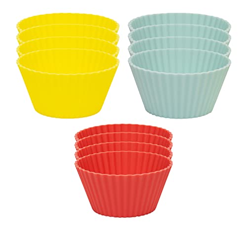 Flerfärgade muffinsformar i silikon – 12-pack återanvändbara muffinsformar för bakning med barn, diskmaskinssäkra, miljövänliga