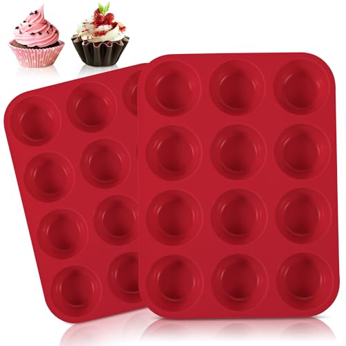 Lästa 2 Stycken Muffinsformar Silikon – Muffinsformar av Silikon, BPA-Fri, Non-Stick-Belagd, Lätt att Rengöra, Diskmaskinssäker – Muffinsplåt, 24 för Cupcakes (Röd)