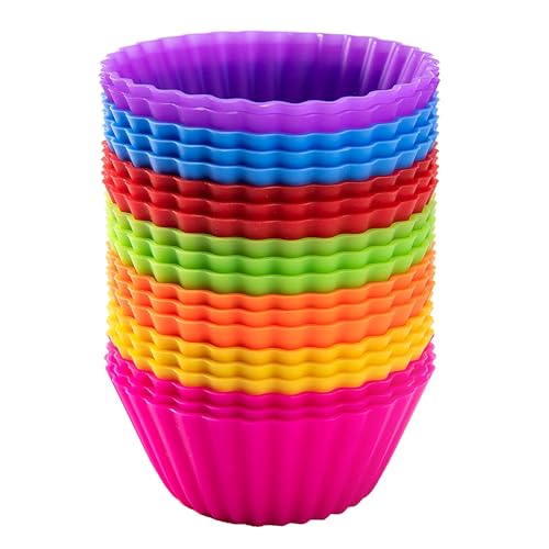 Muffinsformar i silikon, 24 stycken, cupcake-formar, återanvändbara muffinsform, rund silikonform för kakor, kräm, pudding