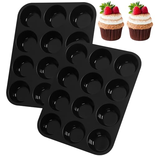WUFANC 2 stycken muffinsformar silikon, 12 stycken temperaturbeständig -40 °C till 230 °C. Silikonmuffinsform för alternativa muffinsformar pappers.