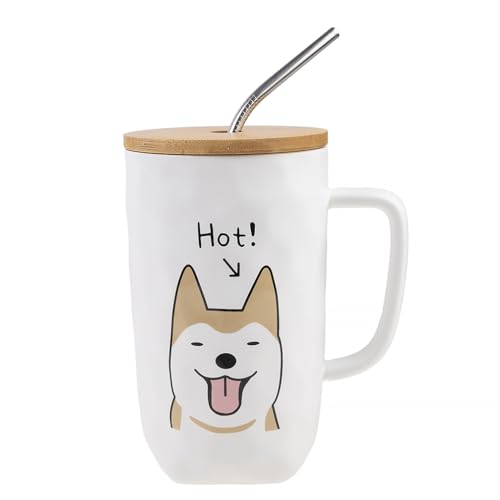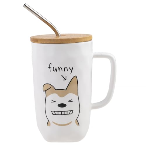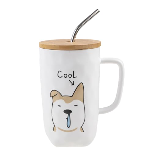 lachineuse Mug-samling hund - den coola hunden - med lock, sugrör och sked - kapacitet: