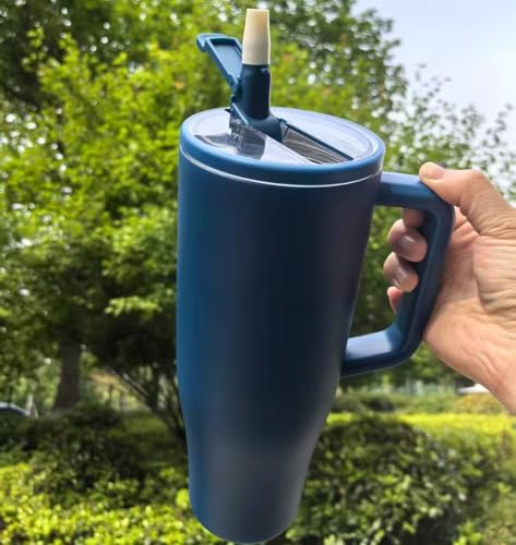 Adventure Tumlare med handtag och sugrör, 1 182 ml (40 oz), No Moq-resemugg i 304 rostfritt stål, BPA-fri stor mug (Storm blå)