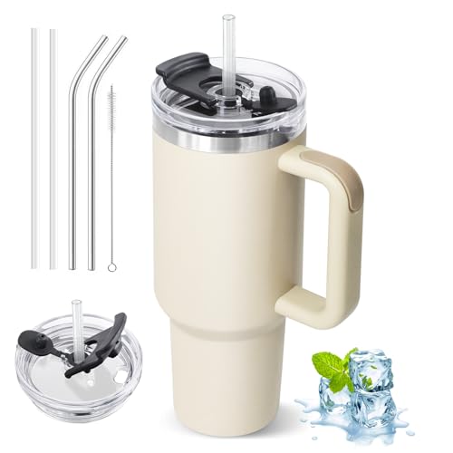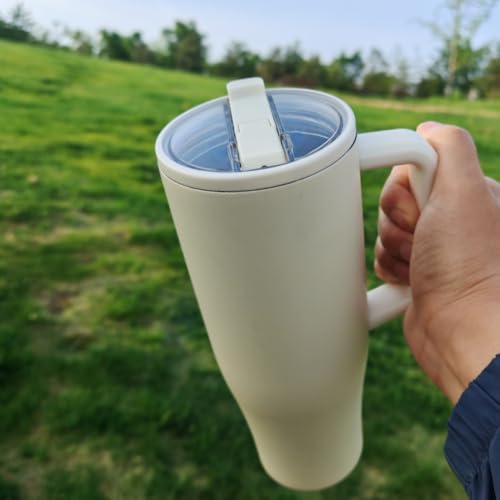 Adventure Tumlare med handtag och sugrör, 1 182 ml (40 oz), No Moq-resemugg i 304 rostfritt stål, BPA-fri stor mug (Lvory)