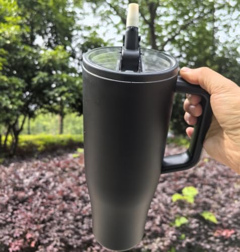 Adventure Quencher Tumlare med handtag och sugrör, 1 182 ml (40 oz), No Moq-resemugg i 304 rostfritt stål, BPA-fri stor mug (New versio black)