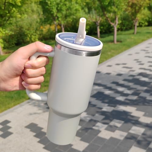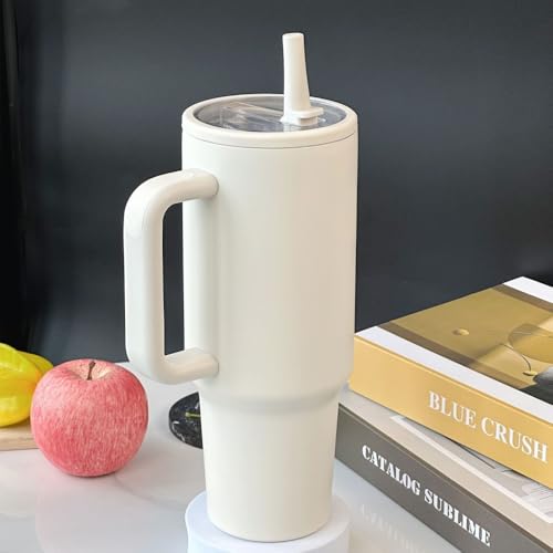 Adventure Tumlare med handtag och sugrör, 1 182 ml (40 oz), No Moq-resemugg i 304 rostfritt stål, BPA-fri stor mug (New versio white)