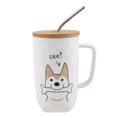 lachineuse Mug COLLECTION DOG - DOG AND BONE - med lock, sugrör och sked - kapacitet:
