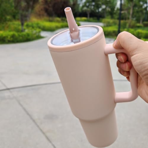 Adventure Tumlare med handtag och sugrör, 1 182 ml (40 oz), No Moq-resemugg i 304 rostfritt stål, BPA-fri stor mug (Rose powder)