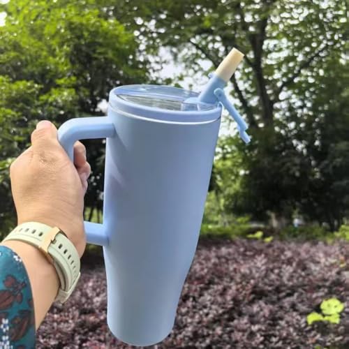 Adventure Tumlare med handtag och sugrör, 1 182 ml (40 oz), No Moq-resemugg i 304 rostfritt stål, BPA-fri stor mug (New Sky Blue)