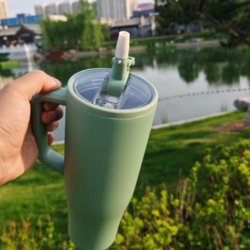 Adventure Quencher Tumlare med handtag och sugrör, 1 182 ml (40 oz), No Moq-resemugg i 304 rostfritt stål, BPA-fri stor mug (New versio green)