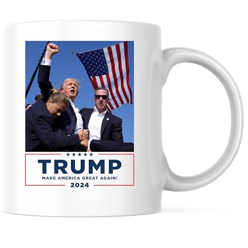 Trump Shot At Coffee Mug – Trump blodig öronnävepump PA Butler Pennsylvania rally misslyckade mördningsförsök – Trump 57,44 – 325 ml kaffekopp – diskmaskin- och mikrovågsugnssäker – TRUMP15