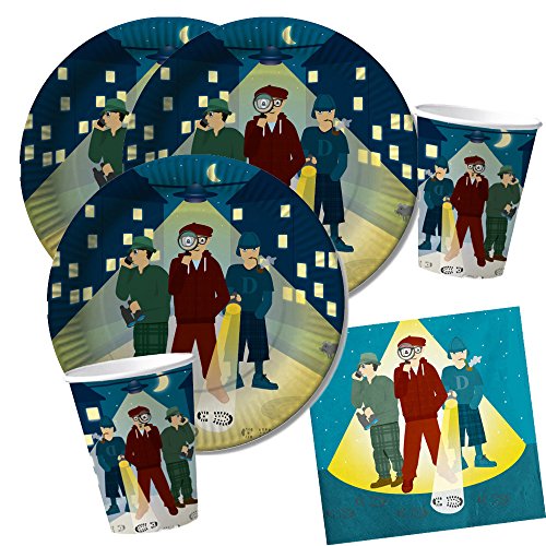 DH koncept 36-delat kalaspaket – detektiv – tallrik mugg servetter för 8 barn