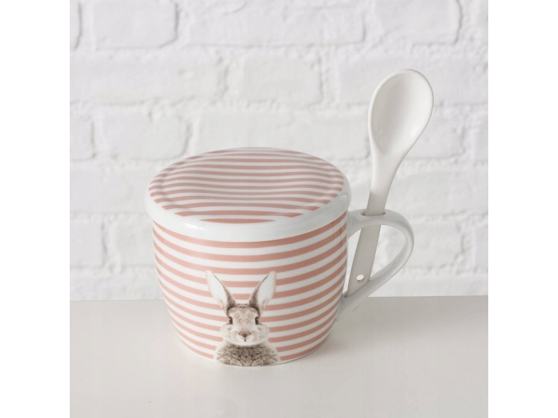 Boltze Mugg Med Lock Och Sked Fluffy, Porslin, Kanin, 600 Ml