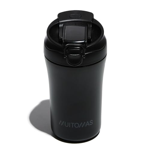 Muitomas, Termisk mugg med lock, termisk kaffekopp för varma och kalla drycker i stål, praktisk och bärbar, kapacitet 350 ml, svart