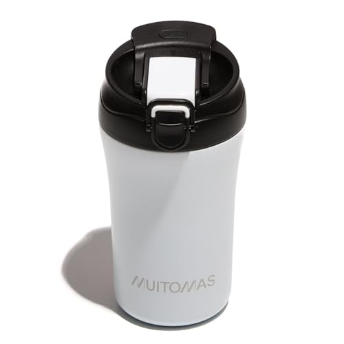 Muitomas, Termisk mugg med lock, termisk kaffekopp för varma och kalla drycker i stål, praktisk och bärbar, kapacitet 350 ml, vit