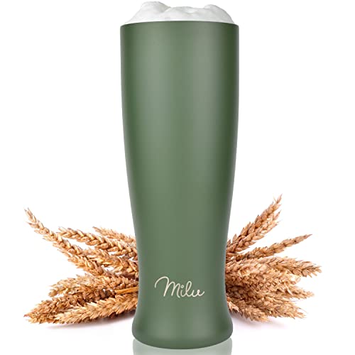 Milu Ölmuggar rostfritt stål | Ölglas isolerad kall i 7 timmar | Witbier Thermo mugg med avtagbart lock Tål diskmaskin | Present för män (500ml, Olivgrönt)