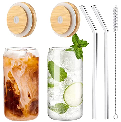 Newpop 2 st glas kaffekoppar, 400 ml espressoglas, cappuccino-koppar, genomskinlig lufttät och vattentät mugg med lock och sugrör, för mjölk te fläckigt, whisky