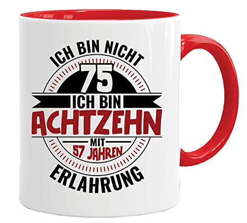 75 födelsedagspresent mugg med slogan | 'I Am Nicht 75 I Bin 18 med 57 års erfarenhet | Födelsedagspresentidéer | Gåvor till pappa | Morfar-mugg | Presentidéer