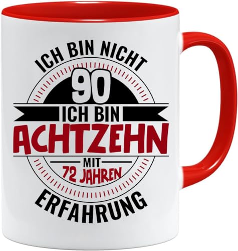 90-årsdag presentmugg med ordspråk | Jag är inte 90 Jag är 18 med 72 års erfarenhet | Födelsedagspresentidéer | Gåvor till pappa | Morfar-mugg | Presentidéer