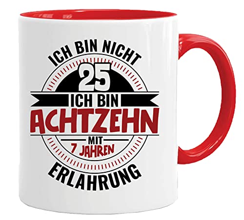 25-årsdag presentmugg med slogan | Jag är inte 25 Jag är 18 med 7 års erfarenhet | Födelsedagspresentidéer | Gåvor till pappa | Morfar-mugg | Presentidéer