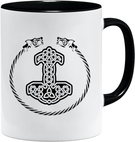 Nordisk vikingakopp | mugg present presentidé för gamla män pappa morfar kaffekopp vikingamotiv dödskalle öl-thors hammare (VIKING026)