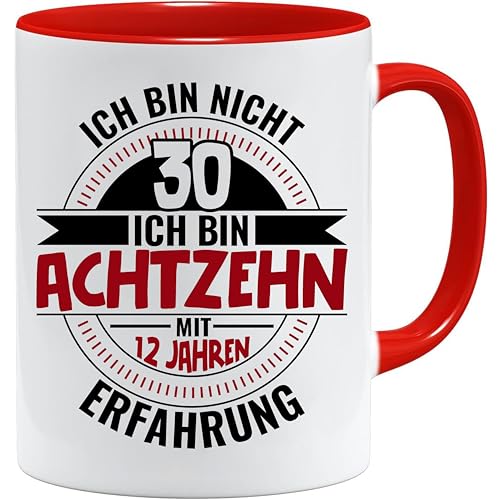 30-årsdagspresent mugg med ordspråk | 'I Am Nicht 30 Ich Bin 18 med 12 års erfarenhet | Födelsedagspresenter | Gåvor till pappa | Morfar-mugg | Presentidéer