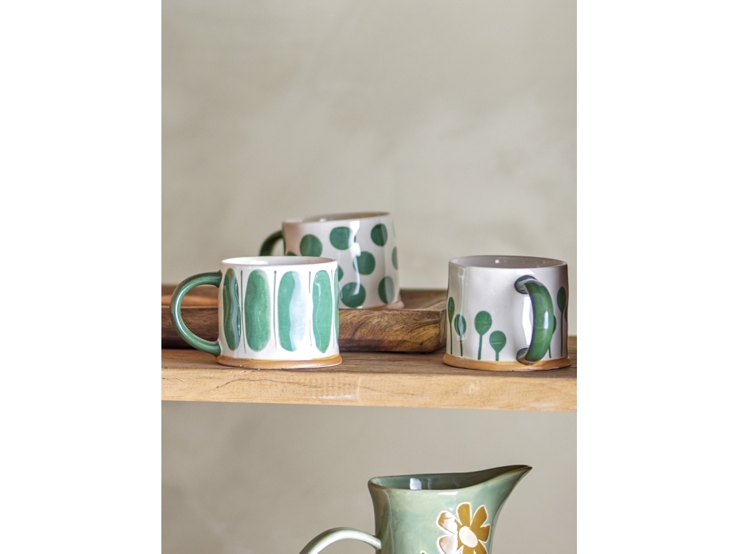 Bloomingville Joseph Mugg, Grön, Stengods Ø9xH9,5 cm, Set om 4