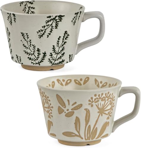 volumoon uppsättning med 2 keramiska koppar, 350 ml kopp keramik, kaffemugg-set, stengods mugg, keramisk mugg, kaffekoppar, tekoppar, för latte te mjölk choklad (växter)